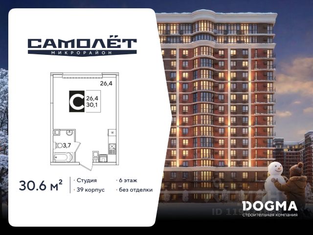 Продаётся студия от застройщика DOGMA. Основные характеристики: • Площадь: 21.60 кв. м • Отделка: с отделкой white box • Расположение: город Краснодар, улица Западный обход. • Жилой комплекс: новый жилой квартал бизнес - класса "Самолёт 7" . "Самолёт 7" - это квартал бизнес-класса в рамках крупнейшего микрорайона в России. Здесь история успеха встречается с амбициями будущего. Проект вдохновлен колоритом кубанских рек и лесов, гармонично подчиняя природу общему архитектурному замыслу. Преимущества жилого квартала "Самолёт 7". Транспортная доступность • 10+ остановок общественного транспорта в шаговой доступности. • 15 минут на автобусе до Ботанического сада имени И. Косенко. • 15 минут на автомобиле до Елизаветинского шоссе. • 19 минут на автомобиле до центральной Красной улицы. Динамичная архитектура Архитектура каскадного строительства вдохновлена золотистыми кубанскими полями и серебристыми реками. Ключевые особенности: • Монолитно-кирпичные технологии с использованием системы Cuuber. • Безупречно гладкие навесные вентилируемые фасады благородного оттенка латуни. • Стекла с напылением, дарящие абсолютную приватность. • Высококачественные материалы, гарантирующие прочность и долговечность. • Равномерная вечерняя подсветка, подчеркивающая геометрию здания. Гранд-лобби Персональный клуб для резидентов - это пространство, которое подходит для всех жителей, включая людей с особыми потребностями. Интерьеры впечатляют современностью и вкусом. Внутреннее наполнение: • Зона ресепшн. • Камерные лаунж-зоны и мягкая мебель. • Помещения для хранения и колясочные. • Гостевой санузел. Особый колорит придают: • Потолки высотой 3,9 метра. • Окна в пол. • Лифтовые порталы с латунными вставками. Собственная река Собственная река, протекающая через весь квартал, геопластика рельефа и двор-сад в японском стиле создают приватное пространство - отражение личных смыслов и ощущений. Перголы, увитые зеленью, вечерняя подсветка фасадов и камерная атмосфера станут излюбленным местом для встреч в любое время. Внутренняя инфраструктура На первых этажах в каждом урбан-блоке созданы привилегированные пространства исключительно для жителей. Всего в квартале 2 закрытых клуба, каждый из которых находится на первом этаже рядом с гранд-лобби. Для резидентов предусмотрены: • Консьерж-сервис, учитывающий даже самые взыскательные пожелания. • Атмосферный кинотеатр. • Фитнес-рум и кидс-клаб. Закрытая территория объединяет SportHub - уникальную локацию для любителей активного отдыха, а также включает детский сад на 280 мест и поликлинику. Технологии Территория закрыта для машин - здесь тихо и безопасно гулять с детьми. Системы безопасности и комфорта: • Круглосуточное видеонаблюдение. • Видеодомофоны для контроля доступа. • Бесконтактный доступ по распознаванию лица или с помощью смартфона. • Лифты, оборудованные "умным зеркалом" (где можно узнать погоду или новости). • В общественных зонах - стабильный Wi-Fi и усиленный сотовый сигнал.