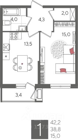 Продается по уступке квартира-студия в ЖК бизнес-класса "Рекорд 2" в центре г. Краснодар.