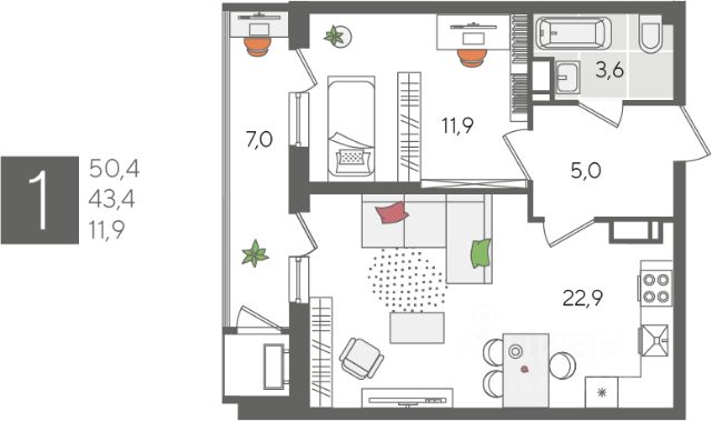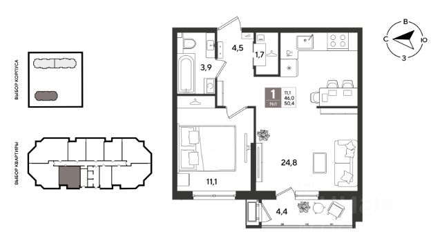 Квартира площадью 24,5 кв.м расположена на 22 этаже и имеет прекрасные видовые характеристики (вид на город, окна выходят на прогулочную зону и сквер)