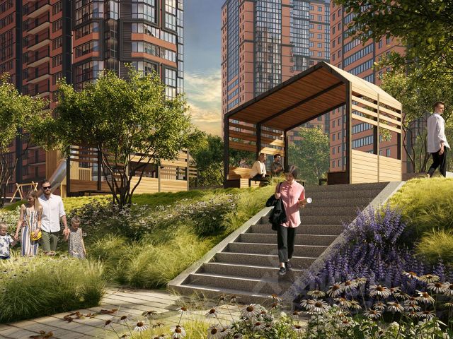 • Двухуровневое благоустройство во дворах