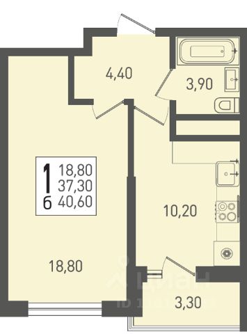 Продаётся 1-комнатная квартира в сданном доме (Литер 1), срок сдачи: IV-кв. 2025, общей площадью 40.67 кв.м., на 3 этаже. Новый жилой дом от застройщика "СЗ Кубаньновострой" расположен по адресу: Россия, Краснодарский край, Динской район, Южно-Кубанское сельское поселение, посёлок Южный, Северная улица