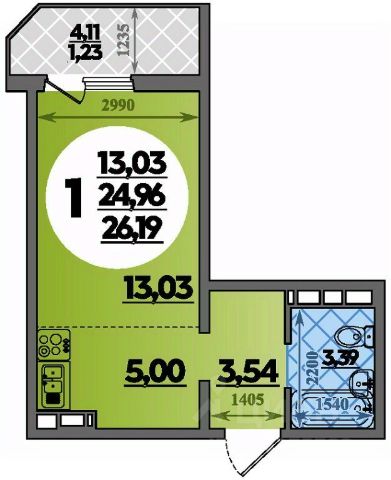 Продаётся студия в сданном доме (Литер 13 ), срок сдачи: I-кв. 2025, общей площадью 30.51 кв.м., на 7 этаже. РАСПОЛОЖЕНИЕ