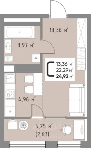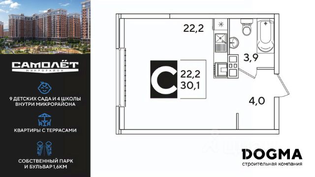 Продаётся студия в строящемся доме (Литер 30 - 18 этап), срок сдачи: IV-кв. 2025, общей площадью 24.1 кв.м., на 7 этаже. Расположение, транспортная доступность