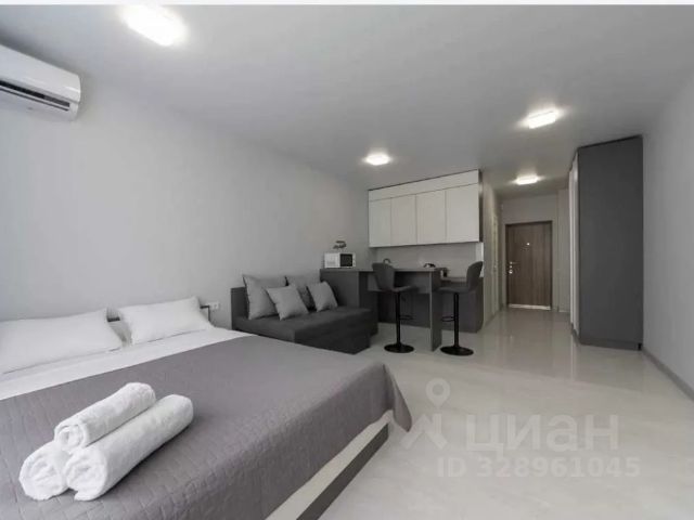 Квартирастудия с полноценной изолированной комнатой. Выбери жизнь в комфорте и стиле. Откройте для себя идеальное сочетание городского комфорта и продуманного дизайна — предлагаем вам квартирустудию с великолепным видом на город!Что вы получаете: Дизайнерский ремонт — эстетика и функциональность в каждой детали. Полная меблировка — вся мебель и техника остаются, можно заезжать сразу после сделки. Жилой комплекс "Акварели2": комфорт на каждом шагу. Ваш новый дом — часть современного ЖК комфорткласса из четырёх монолитнокирпичных домов: Арт.1016542392