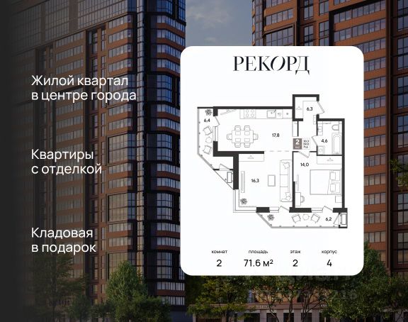 Продается по уступке квартира-студия в ЖК бизнес-класса "Рекорд 2" в центре г. Краснодар.