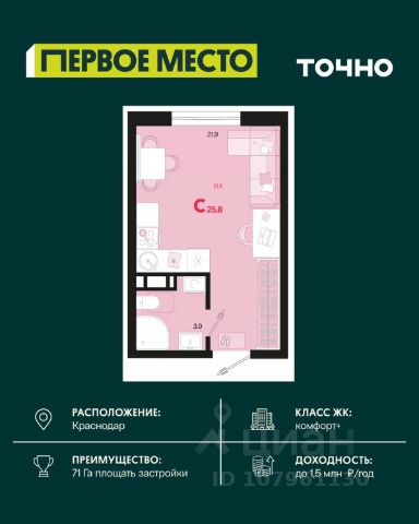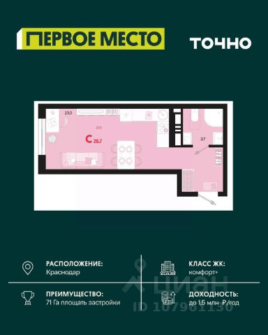В продаже квартира-студия от застройщика! ЖК "Рекорд" 2 очередь, г. Краснодар, Литер 3 Срок сдачи: 4 кв. 2026, общей площадью 27.7 кв.м., на 9 этаже. Жилой Комплекс "РЕКОРД" - место вашего баланса. Город снаружи природа внутри. Квартал с максимумом возможностей для хорошо сбалансированной жизни. Расположен в оживленном благоустроенном районе города. Сочетает в себе и жилую застройку, и торгово-деловые центры. Здесь все под рукой, здесь центр городских событий. • Уникальная локация центр города • Современная архитектура • Панорамные виды • Двухуровневые квартиры с камином и террасой • Элегантные входные группы • Архитектурная подсветка фасадов • Школа во дворе (1550 мест) • Детский сад во дворе (110 мест) • Двор без машин • Подземный паркинг и гостевые парковки • Круглосуточный пост охраны • Медицинский центр • Фитнес центр • Система "умный дом" • Баскетбольная и универсальная спортивные площадки • Современные развивающие детские игровые площадки • Ресторанный дворик с аллеей и фонтаном • Храм с уникальной архитектурой • Премиальные лифты с подсветкой и музыкой • Звукоизоляционные окна • Зарядные устройства для электромобилей • Ароматизация мест общего пользования • Элегантные входные группы • Дизайнерские лобби • Консьерж сервис • Сквозные подъезды и доступ по Face ID • Кладовки • Кондиционирование холлов • Благоустройство территории с Арт объектом • Воркаут-зоны • Зона коворкинга • Wi-fi и USB розетки на всей территории двора Приобрести квартиру можно одним из способов: -субсидированная семейная ипотека 4,5 % на весь срок -рассрочка до конца строительства -оплата наличными -дистанционная покупка Позвоните сейчас и забронируйте квартиру со скидкой!