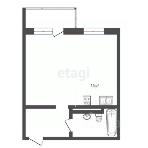 Квартира на 1 этаже, площадь квартиры 27.1 м² + балкон 4 м².