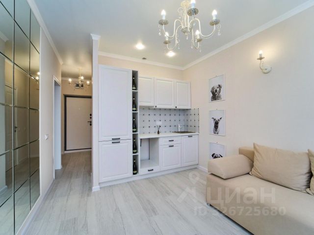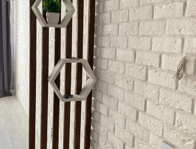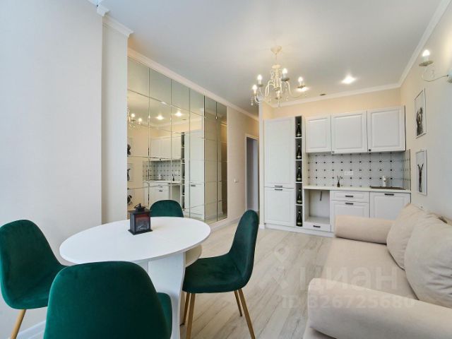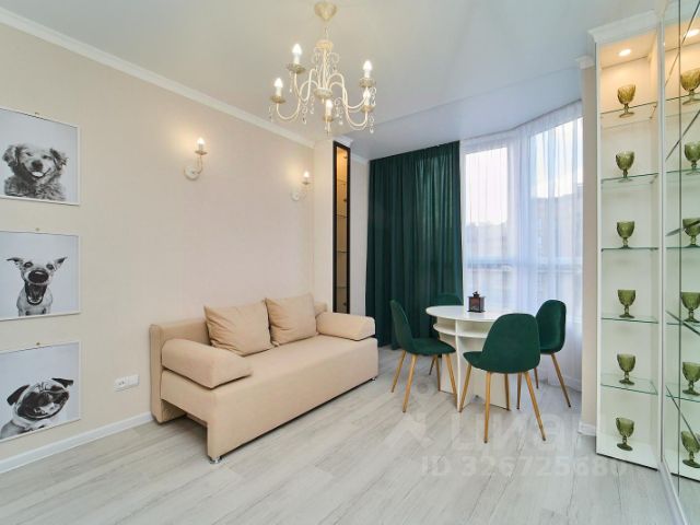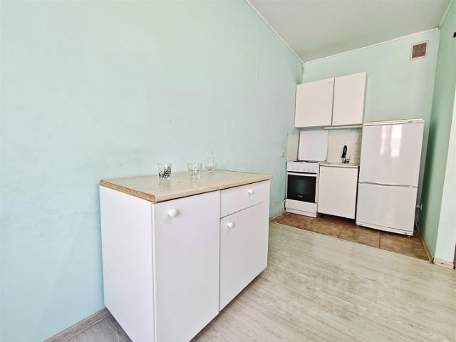 В квартире выполнен ремонт в светлых и спокойных тонах. Хорошая планировка с комнатой правильной прямоугольной формы и просторной кухней, в которой уже установлен кухонный гарнитур. Санузел совмещен, установлена новая качественная сантехника. С кухни есть выход на застекленную лоджию.