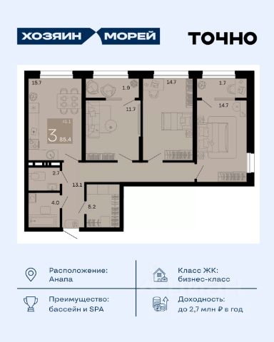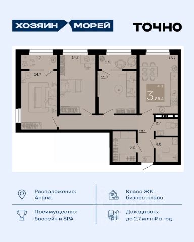 Откройте для себя мир комфорта и роскоши в жилом комплексе бизнес-класса "Хозяин морей". 9 домов от 8 до 12 этажей окружены благоустроенной территорией с прогулочными дорожками, бассейнами, детскими площадками, пространством для спорта и отдыха, двумя садиками и просторной школой. Здесь представлены разнообразные планировки: от комфортабельных студий площадью 33 кв.м до просторных семейных квартир с уникальными видами на бескрайнее море — идеальная комбинация уюта и статуса!