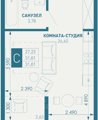 Эта отличная от других квартира-студия , расположена на 8-м, эргономично спланирована, имеет просторную террассу с панорамнным остеклением. Общая площадь жилья составляет 30 м2, кухня-гостиная 24м2, с нишей под спальню, санузел 3,7 м2, и лоджию-террасу 2,6 м2. Эта планировка весьма вариативна и эргономична, и создает совершенно гармоничное пространство с обособленными функциональными зонами.