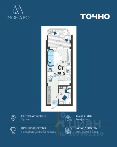 • ✓ В базе Циан 599 квартир-студий в кирпично-монолитном доме в селе Агой Краснодарского края