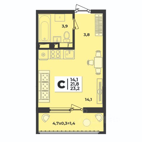 Продаётся светлая и уютная студия. Квартира расположена на 2 этаже. Общая площадь составляет 22,1 кв. м.+3 кв. м просторной лоджии. Квартира в качественной предчистовой отделке, что позволит вам поиграть со своими фантазиями, реализовать все ваши дизайнерские предпочтения. В квартире очень удобная планировка: уютная комната, удобное расположение места для кухонной зоны. Сдельный, просторный санузел. Закрытая территория, на которой расположено - детская и спортивная площадки, пятёрочка, аптека, школа танцев, озон, парковка у дома и многоуровневая наземная парковка. Квартира в отличном районе со всей инфраструктурой в шаговой доступности 4 школы, 3 садика (один из них во дворе). В 5 минутах ходьбы остановки общественного транспорта в 2 минутах ходьбы, спорткомплексы, магазины на любой вкус, ярмарка выходного дня, аллеи для прогулок, огромные парковые зоны, зеленые зоны. Огромный торговый цент West Mall, Лента, Фут Корт. Быстрый выезд в центр и к ТЦ Красная Площадь, парк Галицкого. Так же в нашем районе строится огромный термальный комплекс, в 10 минутах от нашего дома. Звоните, отвечу на все вопросы.