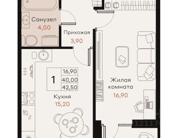 Продаётся 1-комнатная квартира в сданном доме (Литер 1), срок сдачи: I-кв. 2025, общей площадью 42.9 кв.м., на 2 этаже. Новый жилой комплекс "Огурцы" от застройщика "Партнер Инвест Кубань" расположен по адресу Краснодар, посёлок Берёзовый, Целиноградская улица.