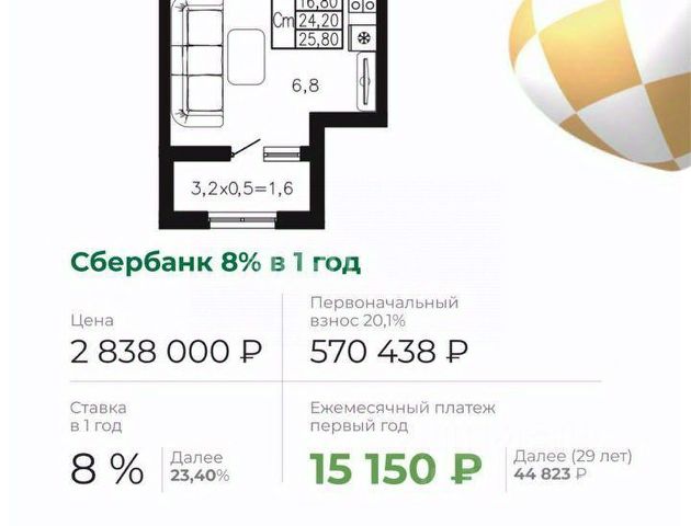 • ✅ Минимальная площадь: 25,8 м²