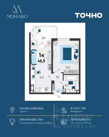 Продаётся студия в сданном доме (7А), срок сдачи: I-кв. 2023, общей площадью 30 кв.м., на 11 этаже. ЖК "Центральный" - это удобная дорожная развязка, закрытая территория, близость к морю, центральный район города, индивидуальное газовое отопление, развитая инфраструктура.