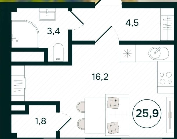 Продаётся студия в строящемся доме (Литер 8), срок сдачи: IV-кв. 2026, общей площадью 26.53 кв.м., на 7 этаже.