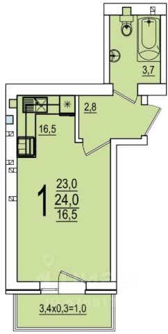 Кухня - гостиная 22 м2 с застекленным балконом площадью 4 м2.