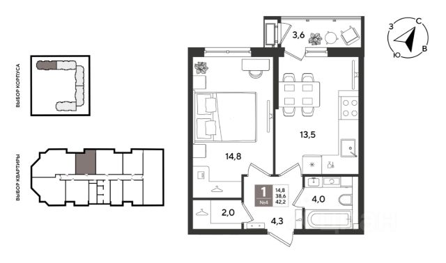 В квартире сделан полный ремонт от застройщика - качественные материалы, пастельные тона, лоджия остеклена.