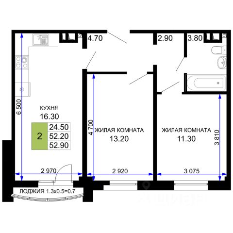 • ✅ Минимальная площадь: 33 м²