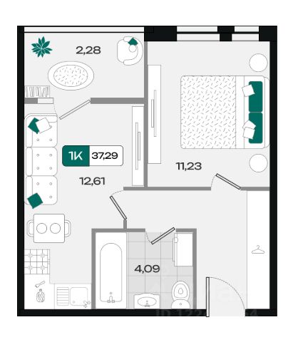 Продаётся 1-комнатная квартира в сданном доме (Литер 2.7), срок сдачи: IV-кв. 2024, общей площадью 32.7 кв.м., на 5 этаже. Расположение, транспортная доступность