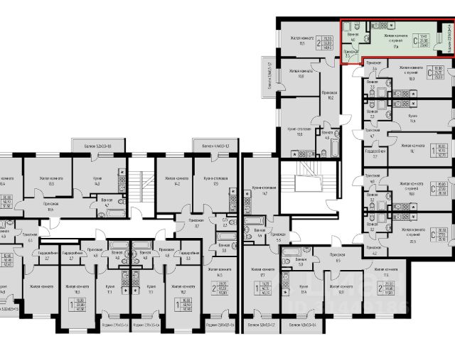 • 1-4 комнатные квартиры площадью от 25,6 м² до 30,5 м² м².