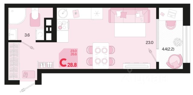 Продается по уступке квартира-студия в ЖК бизнес-класса "Рекорд 2" в центре г. Краснодар.