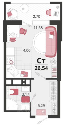 Квартира площадью 24,5 кв.м расположена на 15 этаже и имеет прекрасные видовые характеристики (вид на город, окна выходят на прогулочную зону и сквер)