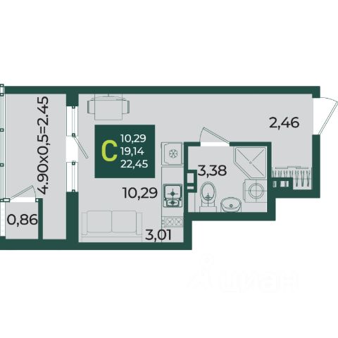 Продаётся студия в сданном доме (Литер 5), срок сдачи: IV-кв. 2023, общей площадью 21.94 кв.м., на 16 этаже. Расположение, транспортная доступность