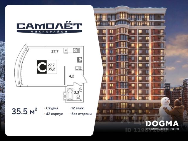 Продаётся студия от застройщика DOGMA. Основные характеристики: • Площадь: 21.50 кв. м • Отделка: с отделкой white box • Расположение: город Краснодар, улица Западный обход. • Жилой комплекс: новый жилой квартал бизнес - класса "Самолёт 7" . "Самолёт 7" - это квартал бизнес-класса в рамках крупнейшего микрорайона в России. Здесь история успеха встречается с амбициями будущего. Проект вдохновлен колоритом кубанских рек и лесов, гармонично подчиняя природу общему архитектурному замыслу. Преимущества жилого квартала "Самолёт 7". Транспортная доступность • 10+ остановок общественного транспорта в шаговой доступности. • 15 минут на автобусе до Ботанического сада имени И. Косенко. • 15 минут на автомобиле до Елизаветинского шоссе. • 19 минут на автомобиле до центральной Красной улицы. Динамичная архитектура Архитектура каскадного строительства вдохновлена золотистыми кубанскими полями и серебристыми реками. Ключевые особенности: • Монолитно-кирпичные технологии с использованием системы Cuuber. • Безупречно гладкие навесные вентилируемые фасады благородного оттенка латуни. • Стекла с напылением, дарящие абсолютную приватность. • Высококачественные материалы, гарантирующие прочность и долговечность. • Равномерная вечерняя подсветка, подчеркивающая геометрию здания. Гранд-лобби Персональный клуб для резидентов - это пространство, которое подходит для всех жителей, включая людей с особыми потребностями. Интерьеры впечатляют современностью и вкусом. Внутреннее наполнение: • Зона ресепшн. • Камерные лаунж-зоны и мягкая мебель. • Помещения для хранения и колясочные. • Гостевой санузел. Особый колорит придают: • Потолки высотой 3,9 метра. • Окна в пол. • Лифтовые порталы с латунными вставками. Собственная река Собственная река, протекающая через весь квартал, геопластика рельефа и двор-сад в японском стиле создают приватное пространство - отражение личных смыслов и ощущений. Перголы, увитые зеленью, вечерняя подсветка фасадов и камерная атмосфера станут излюбленным местом для встреч в любое время. Внутренняя инфраструктура На первых этажах в каждом урбан-блоке созданы привилегированные пространства исключительно для жителей. Всего в квартале 2 закрытых клуба, каждый из которых находится на первом этаже рядом с гранд-лобби. Для резидентов предусмотрены: • Консьерж-сервис, учитывающий даже самые взыскательные пожелания. • Атмосферный кинотеатр. • Фитнес-рум и кидс-клаб. Закрытая территория объединяет SportHub - уникальную локацию для любителей активного отдыха, а также включает детский сад на 280 мест и поликлинику. Технологии Территория закрыта для машин - здесь тихо и безопасно гулять с детьми. Системы безопасности и комфорта: • Круглосуточное видеонаблюдение. • Видеодомофоны для контроля доступа. • Бесконтактный доступ по распознаванию лица или с помощью смартфона. • Лифты, оборудованные "умным зеркалом" (где можно узнать погоду или новости). • В общественных зонах - стабильный Wi-Fi и усиленный сотовый сигнал.