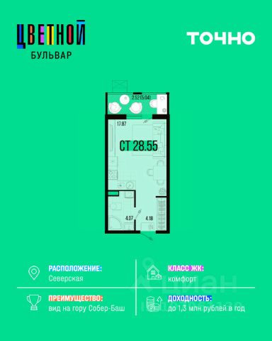 Жилой комплекс "Цветной бульвар" — это уютные дома высотой от 5 до 8 этажей, где каждый найдет квартиру своей мечты: от стильных студий до роскошных двухуровневых квартир с потрясающим видом на гору Собер-Баш! Представьте себе жизнь среди живописной природы, наслаждаясь прогулками по широкому зеленому бульвару длиной 460 метров, окруженному красивыми зелеными насаждениями и зонами для занятий спортом и отдыха всей семьей. Для детей современный детский сад и школа, где специально созданный музей и уникальная STEAM-лаборатория откроют перед ними удивительный мир науки и творчества!