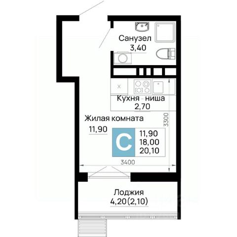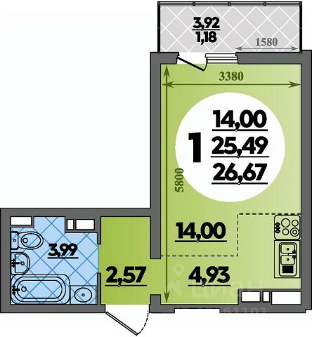 Продаётся студия в строящемся доме (Олега Цокова, 3 (Литер 7)), срок сдачи: I-кв. 2026, общей площадью 26.67 кв.м., на 9 этаже.