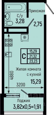 Площадь квартиры с учетом лоджии 26,7м2, без учета лоджии 23,7 м2