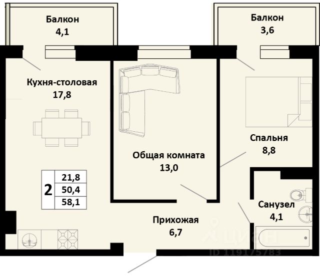 | 🔷 Средняя цена за м2: | 195 тыс. ₽/м² |