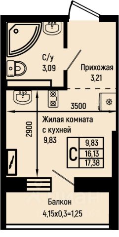 • ✅ Минимальная площадь: 16,7 м²