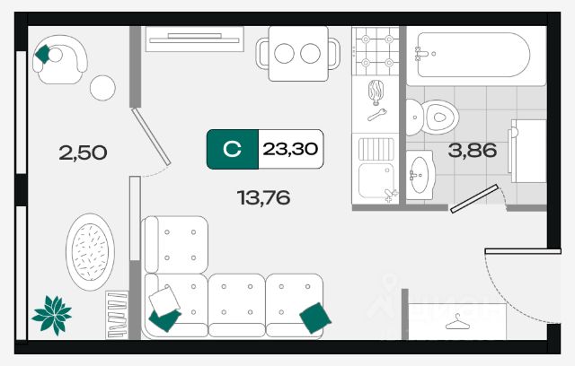Квартира площадью 24,5 кв.м расположена на 22 этаже и имеет прекрасные видовые характеристики (вид на город, окна выходят на прогулочную зону и сквер)