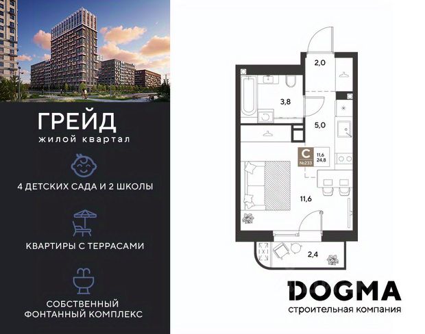 Уже работает детский сад, школа начнет функционировать к сдаче ЖК (конц 2025 г- начало 2026г)