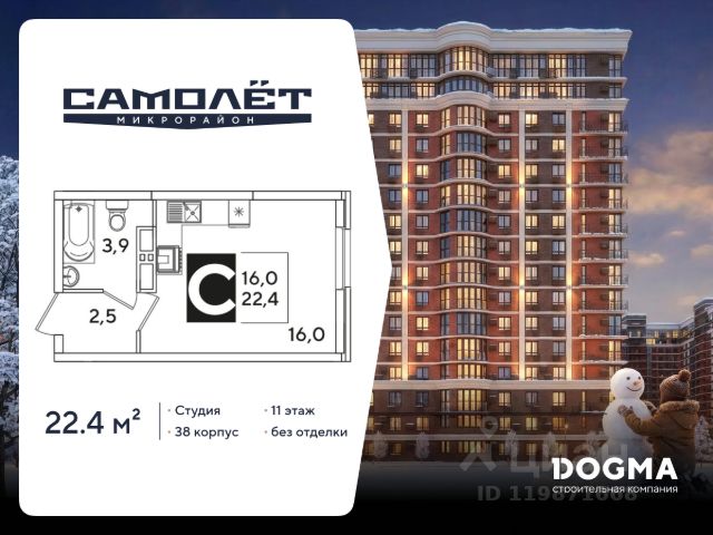 Квартира площадью 24,5 кв.м расположена на 22 этаже и имеет прекрасные видовые характеристики (вид на город, окна выходят на прогулочную зону и сквер)