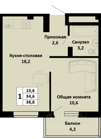 Продаётся 1-комнатная квартира в сданном доме (Литер 2), срок сдачи: IV-кв. 2025, общей площадью 38.2 кв.м., на 3 этаже. Новый жилой дом от застройщика "СЗ Кубаньновострой" расположен по адресу: Россия, Краснодарский край, Динской район, Южно-Кубанское сельское поселение, посёлок Южный, Северная улица