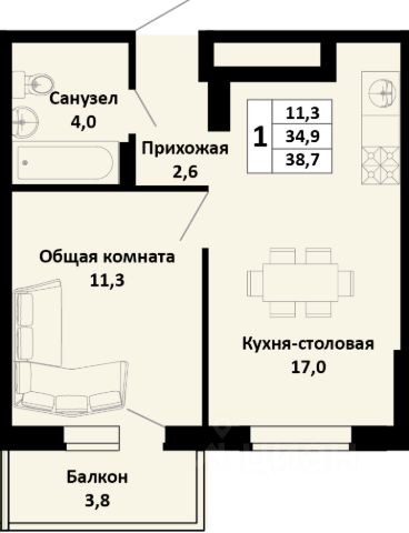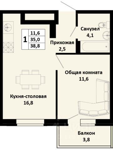 Продаётся 1-комнатная квартира в сданном доме (Литер 1), срок сдачи: IV-кв. 2025, общей площадью 37.93 кв.м., на 4 этаже. Новый жилой дом от застройщика "СЗ Кубаньновострой" расположен по адресу: Россия, Краснодарский край, Динской район, Южно-Кубанское сельское поселение, посёлок Южный, Северная улица