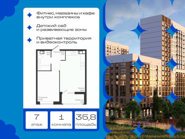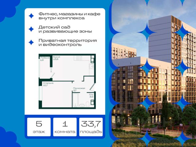 Продаётся 1-комнатная квартира в сданном доме (Литер 6), срок сдачи: II-кв. 2024, общей площадью 37.71 кв.м., на 1 этаже. РАСПОЛОЖЕНИЕ Квартира находится в развитом жилом районе Молодежный-2 в п. Березовый, в 15 минутах езды от знаковых мест Краснодара: ТРЦ "Красная площадь", "Баскет-Холла" и Ледового дворца. Свежий воздух, много зелени, отсутствие большого автомобильного трафика, уютные скверы и парки для прогулок - все это делает микрорайон максимально комфортным для проживания. Рядом расположены школа и детский сад. В шаговой доступности супермаркеты, аптеки, детская поликлиника, пункты выдачи интернет заказов: Ozon, Wildberries, Яндекс Маркет, салоны красоты, автосервисы, зоомагазины. В 10 минутах от Молодежного находится Городской сосновый сад. ОТДЕЛКА Квартира сдается с готовым ремонтом под ключ: Металлическая входная дверь с надежным замком и фурнитурой Стильные межкомнатные двери Матовые натяжные потолки Плотные виниловые обои пастельных тонов Санузел под ключ: ванна с декоративным экраном, удобная раковина, смесители, полотенцесушитель. Установлены все радиаторы, выключатели и счетчики Балкон и лоджия остеклены КОМФОРТ В цокольных этажах домов расположены продуктовые и хозяйственные магазины, кофейни, пункты выдачи и др. Вы непременно оцените удобные входные группы. Просторные и светлые лифтовые холлы, безопасные и бесшумные лифты. Уютный двор, в котором находятся детские и спортивные площадки с прорезиненным безопасным покрытием, уличные тренажеры, развивающие аттракционы, а также комфортные зоны отдыха. В таком дворе приятно отдыхать или заниматься спортом взрослым и очень интересно играть детям. Дома находятся на большом расстоянии друг от друга, поэтому во дворах много свободного пространства. ГИБКИЕ ВАРИАНТЫ ПРИОБРЕТЕНИЯ -ИПОТЕКА СЕМЕЙНАЯ -IT-ИПОТЕКА СПЕЦ.ПРОГРАММА "ИПОТЕКА ДЛЯ МЕДИЦИНСКИХ И ПЕДАГОГИЧЕСКИХ РАБОТНИКОВ" -РАССРОЧКА -НАЛИЧНЫЙ РАСЧЕТ (предоставляется скидка) -МАТЕРИНСКИЙ КАПИТАЛ -ВСЕ ВИДЫ СЕРТИФИКАТОВ