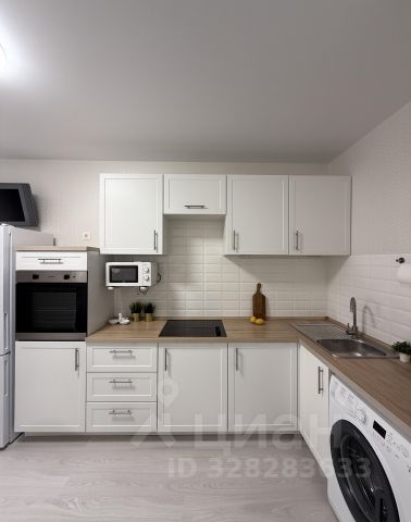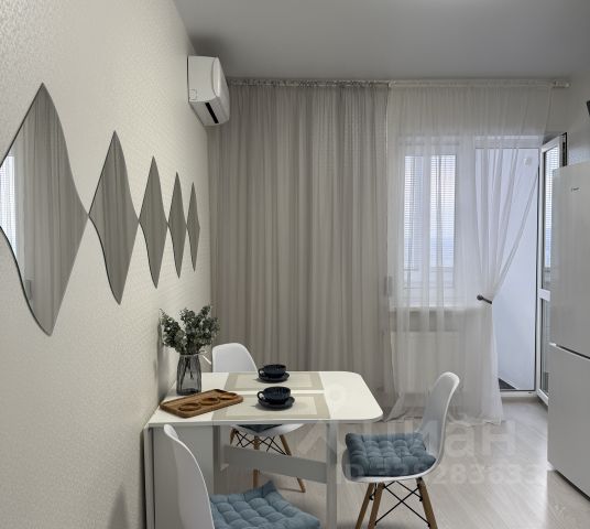 В квартире выполнен ремонт в светлых и спокойных тонах. Хорошая планировка с комнатой правильной прямоугольной формы и просторной кухней, в которой уже установлен кухонный гарнитур. Санузел совмещен, установлена новая качественная сантехника. С кухни есть выход на застекленную лоджию.