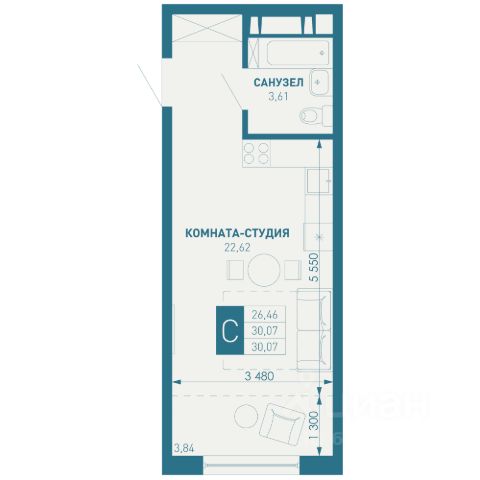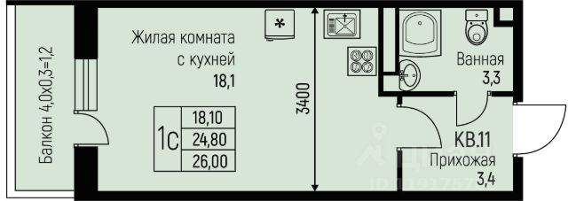 Продаётся студия в сданном доме (Литер 12), срок сдачи: IV-кв. 2024, общей площадью 34.01 кв.м., на 1 этаже. РАСПОЛОЖЕНИЕ