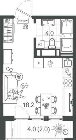 В квартире установлен кондиционер, работающий на охлаждение и обогрев, управляемый дистанционно. Поэтому, как и другая техника в квартире, он может быть включен и настроен для создания комфортной температуры - удаленно из любой точки планеты. Ещё из техники, установлен: телевизор, холодильник, электрическая варочная панель, бойлер с дистанционным управлением и стиральная машина.