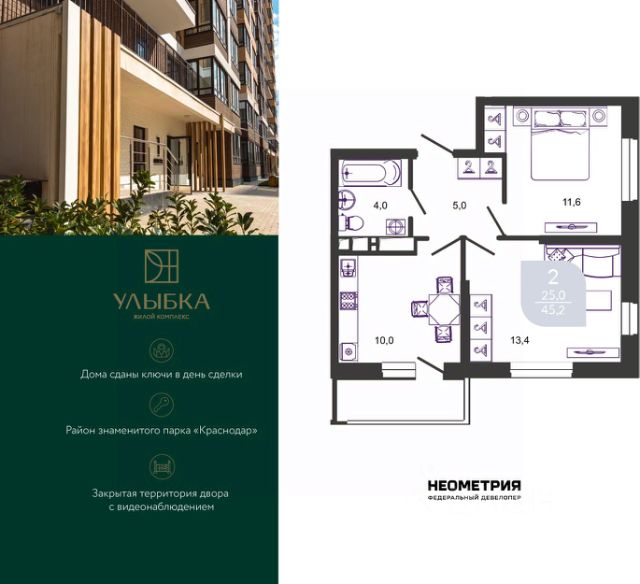 Квартира находится в одном из самых привлекательных районов города, на первой линии парка Галицкого (парк "Краснодар"). Жить рядом с таким парком здорово, ведь до Японского сада, Парка облаков, озер с рыбами, экзотических деревьев и необычных арт-объектов буквально рукой подать.