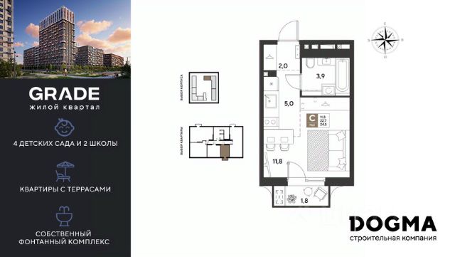В продаже квартира-студия от застройщика! ЖК GRADE г. Краснодар, Литер 15 Срок сдачи: 4 кв. 2028, общей площадью 21.1 кв.м., на 3 этаже. GRADE от DOGMA: квартал бизнес-класса. Никогда неоклассика не была представлена в краснодарской архитектуре с таким характером. Пока не появился GRADE, неоклассический квартал, объединяющий строгие формы и величие с прогрессивными технологиями и лаконичностью современного дизайна. Жить в GRADE — значит чувствовать статус, наслаждаться свободой и управлять своим временем. Квартал с переменной этажностью 9, 16 и 18 этажей предлагает полную инфраструктуру для жизни: 4 детских сада, 2 школы, поликлиника и ФОК расположены в шаговой доступности. Ваши привилегии в GRADE: Архитектура в стиле неоклассицизм. Гранд-лобби с панорамными окнами, мягкой мебелью и выдержанной палитрой. Закрытый клуб с консьерж-сервисом: Детский клуб; Кинотеатр на 20 мест; Фитнес-рум. Благоустройство: Парк с фонтаном и амфитеатром, эко-площадки, зоны отдыха, спортивные площадки. Коммерция на первых этажах с площадками для бизнеса. Технологии "Умный дом": Управление через смартфон; Бесключевой доступ по BLE-технологии; Круглосуточное видеонаблюдение; Бесшовный Wi-Fi по всей территории; Интеллектуальные счетчики. Многоуровневый подземный паркинг с видеонаблюдением, прямым доступом на скоростном лифте и электрозарядками. Дополнительные удобства: Колясочные, велобоксы, кладовые помещения, скоростные лифты. Приобрести квартиру можно одним из способов: Семейная ипотека. Рассрочка. Оплата наличными. Дистанционная покупка. Позвоните сейчас и узнайте больше о возможностях приобретения квартиры бизнес-класса в ЖК GRADE! Квартира-студия в Краснодаре.