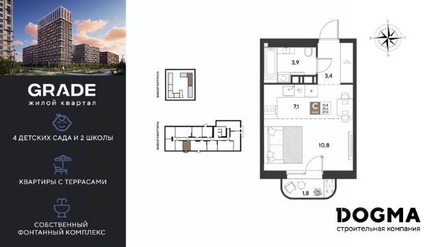 В продаже квартира-студия от застройщика! ЖК GRADE г. Краснодар, Литер 15 Срок сдачи: 4 кв. 2028, общей площадью 21.1 кв.м., на 3 этаже. GRADE от DOGMA: квартал бизнес-класса. Никогда неоклассика не была представлена в краснодарской архитектуре с таким характером. Пока не появился GRADE, неоклассический квартал, объединяющий строгие формы и величие с прогрессивными технологиями и лаконичностью современного дизайна. Жить в GRADE — значит чувствовать статус, наслаждаться свободой и управлять своим временем. Квартал с переменной этажностью 9, 16 и 18 этажей предлагает полную инфраструктуру для жизни: 4 детских сада, 2 школы, поликлиника и ФОК расположены в шаговой доступности. Ваши привилегии в GRADE: Архитектура в стиле неоклассицизм. Гранд-лобби с панорамными окнами, мягкой мебелью и выдержанной палитрой. Закрытый клуб с консьерж-сервисом: Детский клуб; Кинотеатр на 20 мест; Фитнес-рум. Благоустройство: Парк с фонтаном и амфитеатром, эко-площадки, зоны отдыха, спортивные площадки. Коммерция на первых этажах с площадками для бизнеса. Технологии "Умный дом": Управление через смартфон; Бесключевой доступ по BLE-технологии; Круглосуточное видеонаблюдение; Бесшовный Wi-Fi по всей территории; Интеллектуальные счетчики. Многоуровневый подземный паркинг с видеонаблюдением, прямым доступом на скоростном лифте и электрозарядками. Дополнительные удобства: Колясочные, велобоксы, кладовые помещения, скоростные лифты. Приобрести квартиру можно одним из способов: Семейная ипотека. Рассрочка. Оплата наличными. Дистанционная покупка. Позвоните сейчас и узнайте больше о возможностях приобретения квартиры бизнес-класса в ЖК GRADE!