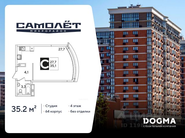 Продаётся студия от застройщика DOGMA.