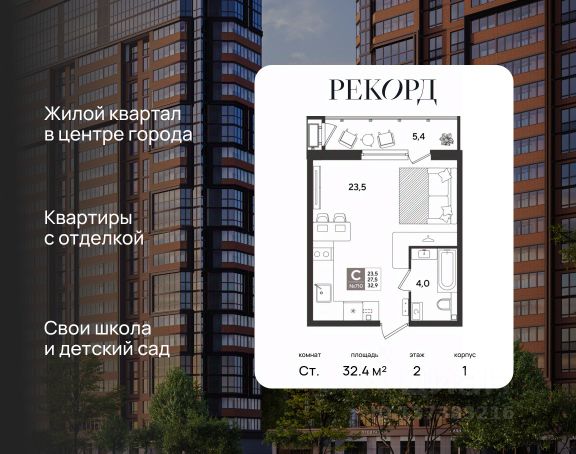 В продаже студия от застройщика! ЖК "Рекорд" 2 очередь, г. Краснодар, Литер 4. Срок сдачи: 2 кв. 2026, общей площадью 30.4 кв.м., на 3 этаже. Жилой Комплекс "РЕКОРД" - место вашего баланса. Город снаружи природа внутри. Квартал с максимумом возможностей для хорошо сбалансированной жизни. Расположен в оживленном благоустроенном районе города. Сочетает в себе и жилую застройку, и торгово-деловые центры. Здесь все под рукой, здесь центр городских событий. • Уникальная локация центр города • Современная архитектура • Панорамные виды • Элегантные входные группы • Архитектурная подсветка фасадов • Школа во дворе (1550 мест) • Детский сад во дворе (110 мест) • Двор без машин • Подземный паркинг и гостевые парковки • Круглосуточный пост охраны • Медицинский центр • Фитнес центр • Система "умный дом" • Баскетбольная и универсальная спортивные площадки • Современные развивающие детские игровые площадки • Ресторанный дворик с аллеей и фонтаном • Храм с уникальной архитектурой • Премиальные лифты с подсветкой и музыкой • Звукоизоляционные окна • Зарядные устройства для электромобилей • Ароматизация мест общего пользования • Элегантные входные группы • Дизайнерские лобби • Консьерж сервис • Сквозные подъезды • Кладовки • Кондиционирование холлов • Благоустройство территории с Арт объектом • Воркаут-зоны • Зона коворкинга Приобрести квартиру можно одним из способов: -субсидированная семейная ипотека -оплата наличными -дистанционная покупка Позвоните сейчас и забронируйте квартиру со скидкой!