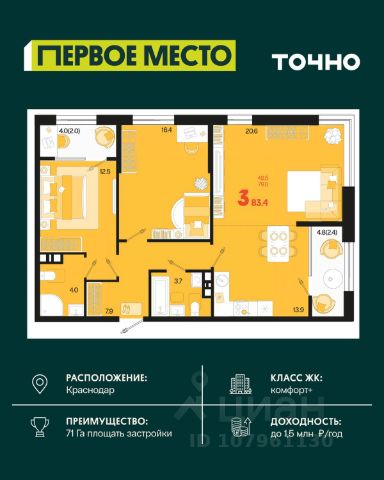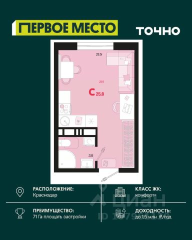 Купить квартиру-студию рядом со школой на улице Анатолия Барабанова в городе Краснодар