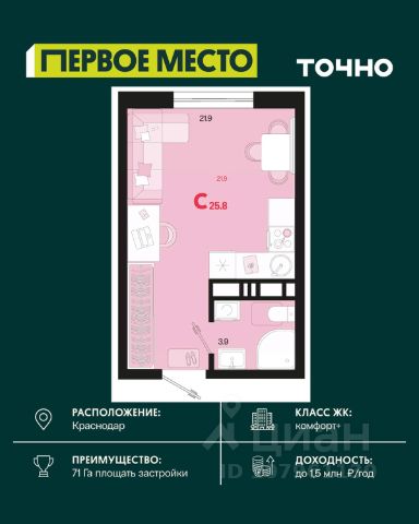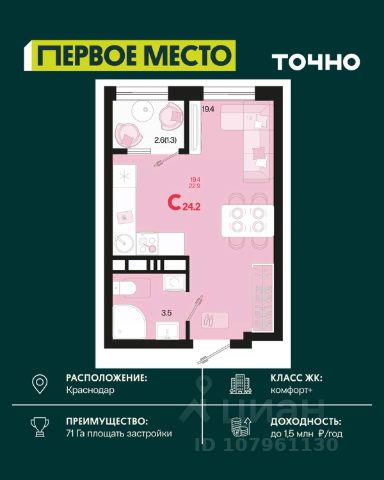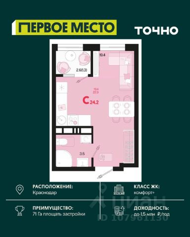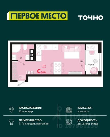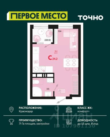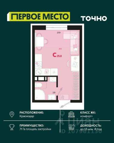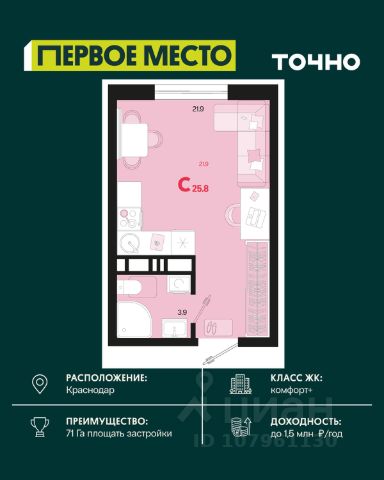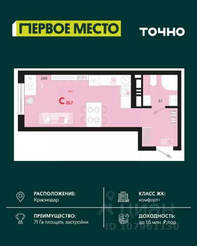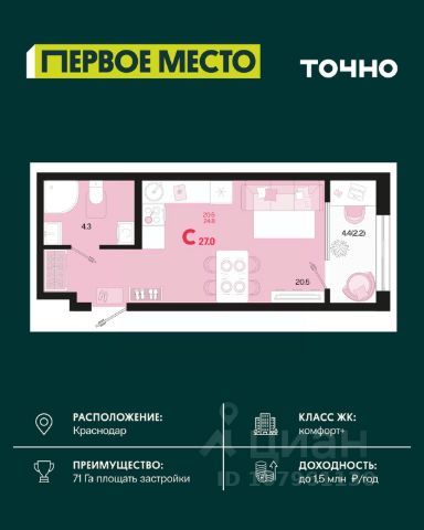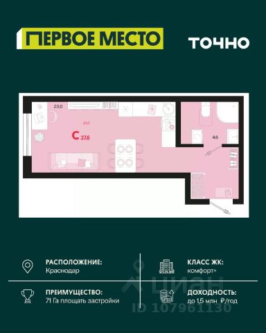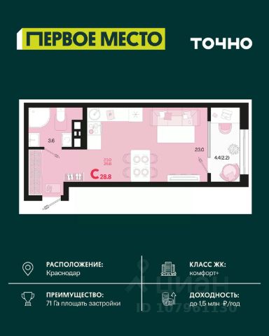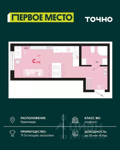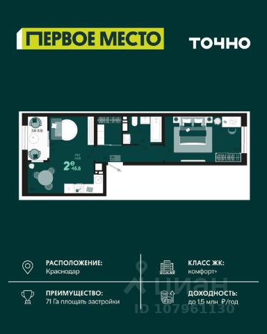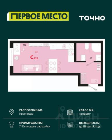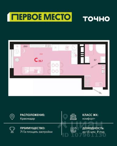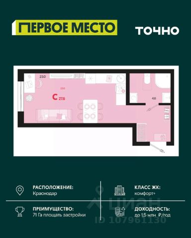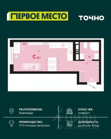 Жилой район "Первое место"- один из самых масштабных проектов в России. На территории 71 га 18 кварталов, 31 дом переменной этажности от 8 до 18 этажей, собственный парк 9 га, храмовый комплекс, пешеходный бульвар "Круг семьи", детские и спортивные площадки, мангальные зоны и различные локации для отдыха. В шаговой доступности действующие муниципальные образовательные учреждения: школа на 1 100 мест и детский сад на 250 мест. Помимо этого, в жилом районе "Первое место" построятся школа на 1700 мест с крытым 25-метровым бассейном и 5 детских садов на 1 490 мест. На первых этажах многоуровневых парковок "паркхабов" разместится более 61 тыс м2 коммерческих помещений. Жителям будут доступны собственный фитнес-центр, кафе, рестораны и магазины. В каждом подъезде предусмотрены дизайнерские холлы в стиле лобби отелей, консьерж-сервис, лапомойки, отдельные колясочные и велосипедные. Также в домах будут просторные кладовые помещения и комнаты для хранения почты с почтоматами для получения посылок из маркетплейсов.